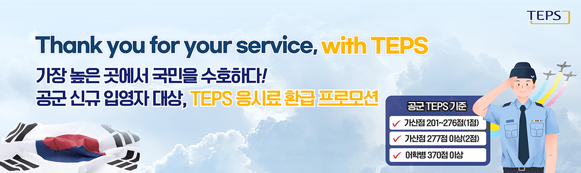 대한민국 공군병 지원자라면 TEPS로 어학가산점 준비를!!